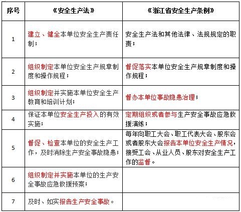 《浙江省安全生產(chǎn)條例》規(guī)定: 企業(yè)主要負(fù)責(zé)人的職責(zé) (一)安全生產(chǎn)法和其他法律、法規(guī)規(guī)定的職責(zé); (二)督促落實(shí)本單位安全生產(chǎn)規(guī)章制度和操作規(guī)程; (三)督辦本單位事故隱患治理; (四)定期組織或者參與生產(chǎn)安全事故應(yīng)急救援演練; (五)每年向職工大會(huì)、職工代表大會(huì)、股東會(huì)或者股東大會(huì)報(bào)告本單位安全生產(chǎn)情況,接受工會(huì)、從業(yè)人員、股東對(duì)安全生產(chǎn)工作的監(jiān)督。