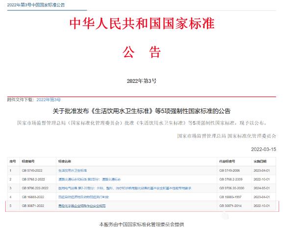 關(guān)于批準(zhǔn)發(fā)布GB30871-2022 《危險化學(xué)品企業(yè)特殊作業(yè)安全規(guī)范》強(qiáng)制性國家標(biāo)準(zhǔn)的公告