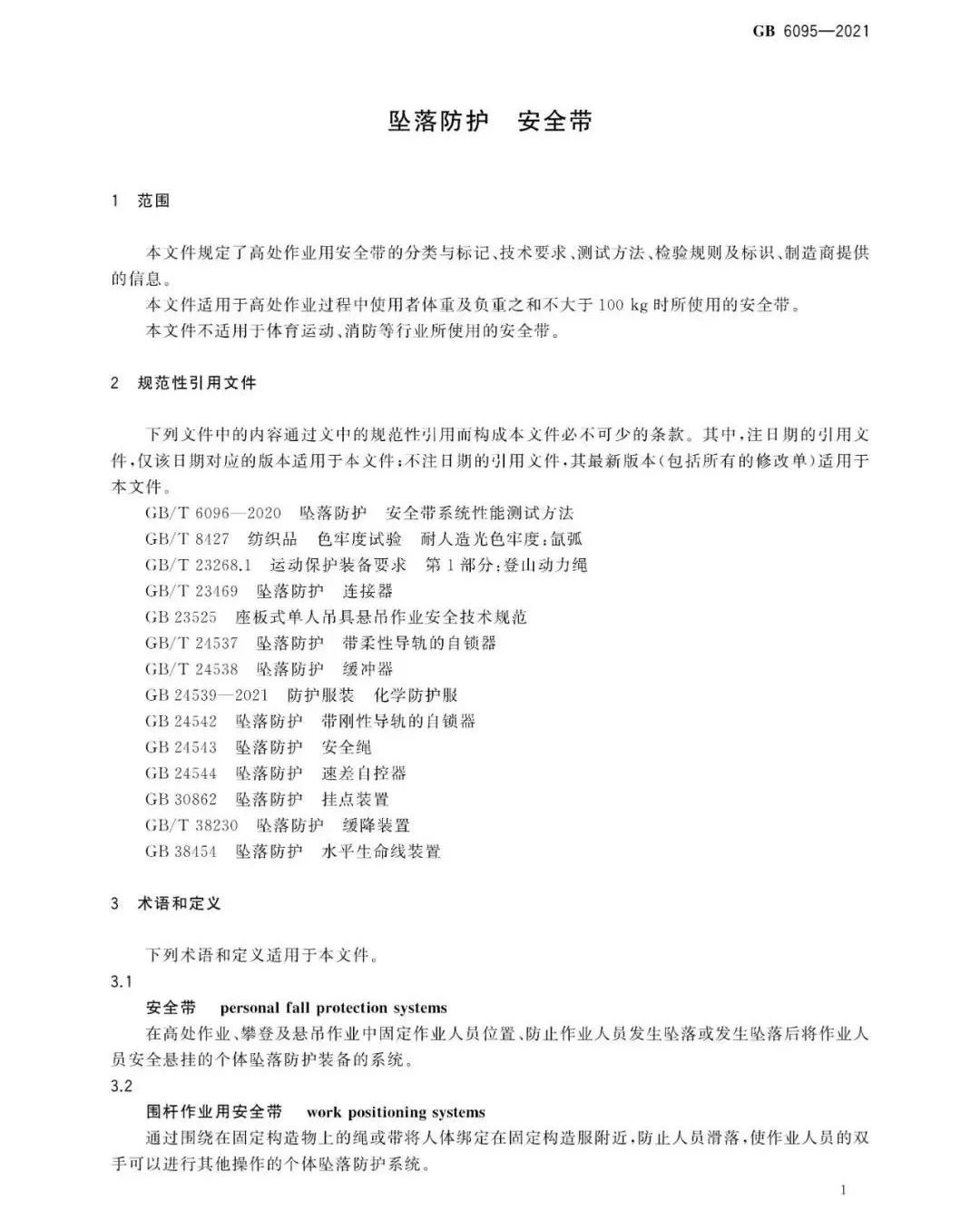 GB 6095-2021《墜落防護(hù) 安全帶》,9月1日實(shí)施!