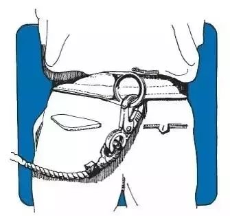 ② 系好左腿帶或扣索,系好右腿帶或扣索。