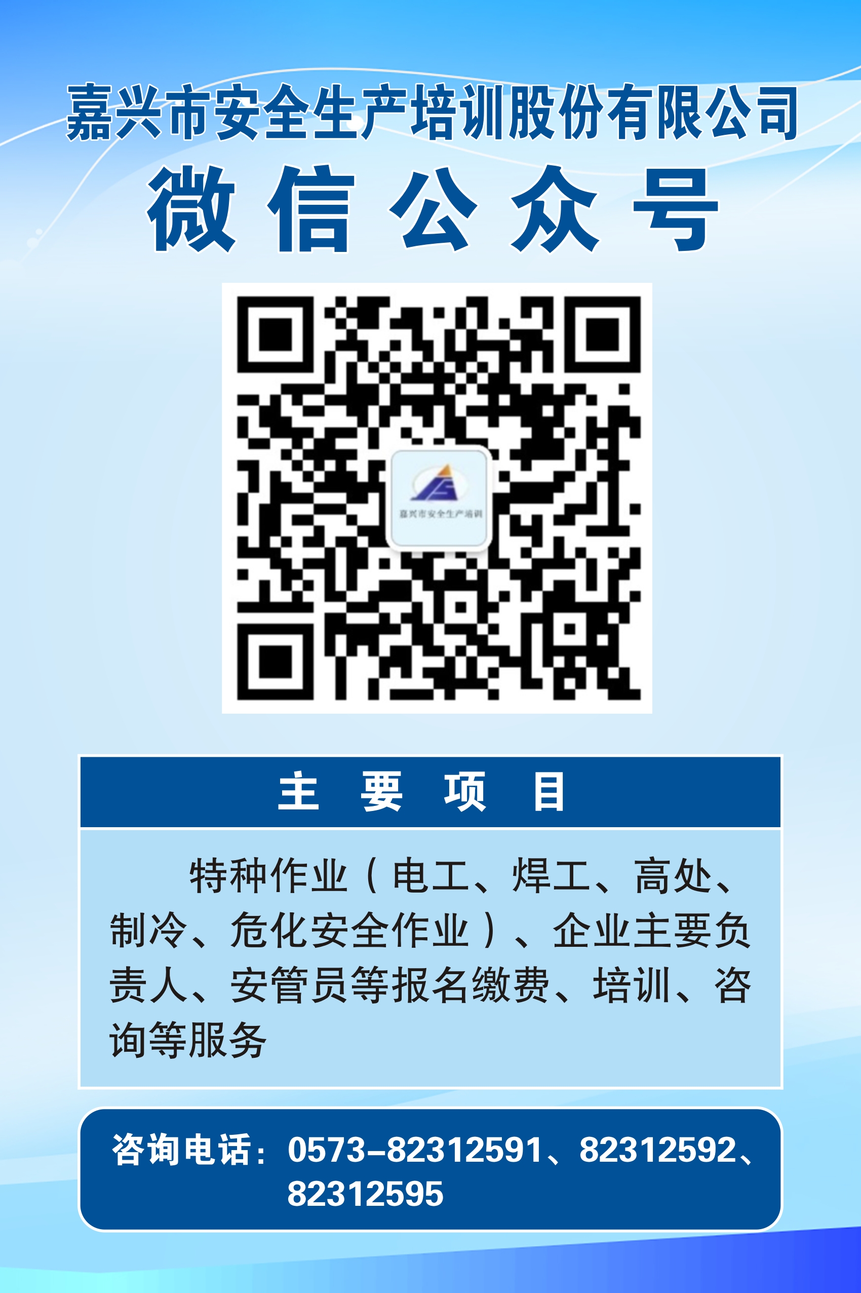 疫情期間,嘉興市安全生產(chǎn)培訓(xùn)股份有限公司特種作業(yè)(焊工作業(yè)、高壓電工作業(yè)證、低壓電工證、;踩鳂I(yè)、高處作業(yè)、制冷與空調(diào)作業(yè)等)報(bào)名培訓(xùn)考證均采用線上報(bào)名方式,可關(guān)注微信公眾號(hào)“嘉興市安全生產(chǎn)培訓(xùn)”,進(jìn)行報(bào)名操作。