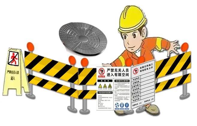 12.有限空間的坑、洼、溝或孔、通道出入口應設(shè)置防護欄、蓋和警告標志,夜 間應設(shè)警示紅燈。