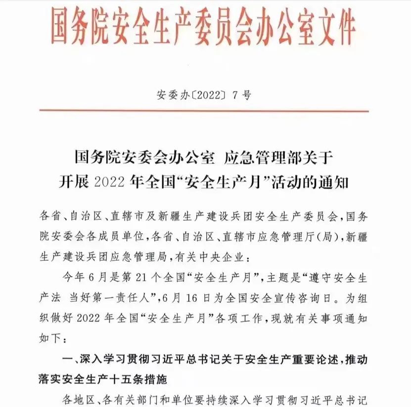 三、國(guó)務(wù)院安委16個(gè)檢查組全國(guó)大檢查已開(kāi)始 根據(jù)黨中央、國(guó)務(wù)院決策部署和全國(guó)安全生產(chǎn)大檢查工作安排,自4月中旬至6月底,國(guó)務(wù)院安委會(huì)組織16個(gè)綜合檢查組,對(duì)31個(gè)。ㄗ灾螀^(qū)、直轄市)和新疆生產(chǎn)建設(shè)兵團(tuán)安全生產(chǎn)大檢查情況進(jìn)行綜合督導(dǎo),并同步開(kāi)展國(guó)務(wù)院2021年度省級(jí)政府安全生產(chǎn)和消防工作考核巡查及國(guó)務(wù)院安委會(huì)成員單位安全生產(chǎn)工作考核。重點(diǎn)檢查15條硬措施! 新安法已經(jīng)實(shí)行,“生產(chǎn)經(jīng)營(yíng)單位的主要負(fù)責(zé)人是本單位安全生產(chǎn)第一責(zé)任人,對(duì)本單位的安全生產(chǎn)工作全面負(fù)責(zé)”這一條款對(duì)于企業(yè)“一把手”來(lái)說(shuō),是壓力也是動(dòng)力。主要負(fù)責(zé)人重視安全流于表面,一直是部分企業(yè)安全生產(chǎn)工作的痛點(diǎn),而首次在法律層面提出第一責(zé)任人的說(shuō)法,體現(xiàn)出企業(yè)主要負(fù)責(zé)人對(duì)安全生產(chǎn)的極端重要性。
