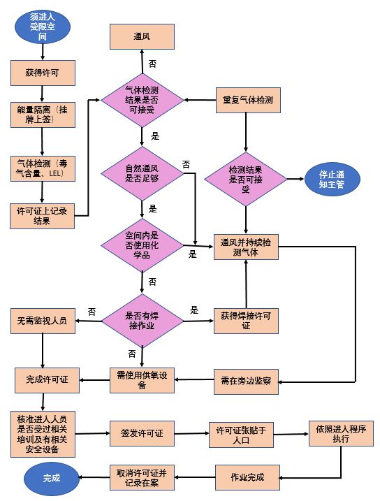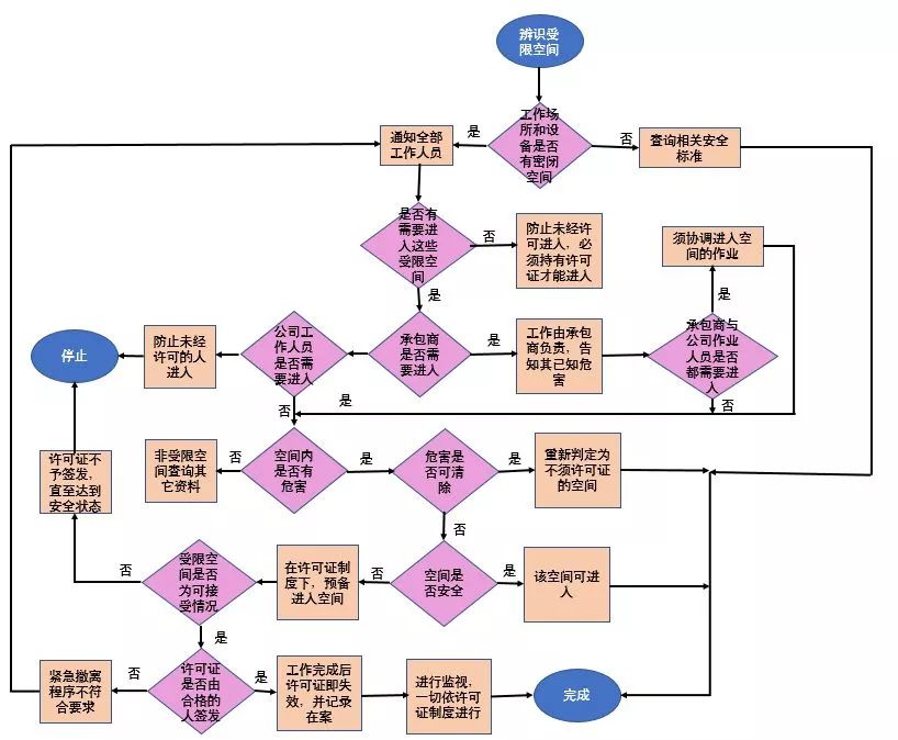 辨認及申請進入受限空間許可證的決策流程