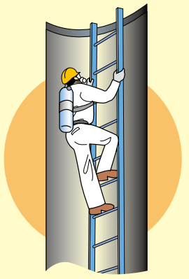 有限空間危險源辨識 1、空氣缺氧 空氣中一般含21%氧氣,在下列情況下氧氣可能減少,威脅生命: ❶ 耗氧化學反應(yīng) 氧氣因氣化而消耗,例如焊接、氣焊切割、銹蝕、明火工序、發(fā)酵、發(fā)霉。 ❷ 取代 氧氣被惰性氣體所排擠,例如氮氣、氬氣、二氧化碳。 ❸ 表面吸收 氧氣被多孔表面所吸附,例如活性碳。