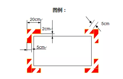 E類:消防栓、配電柜等禁放物品的開門區(qū)域處的定位 使用黃白相間的斑馬式填充線;